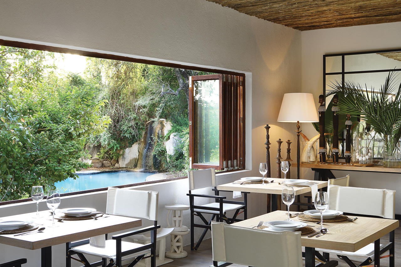 A large swimming pool, with a waterfall cascading over granite boulders, is a welcome respite during the heat of a summer's day. At night, you enjoy lavish dinners of Pan-African cuisine, served in their lantern-lit boma or perhaps on the dining deck.