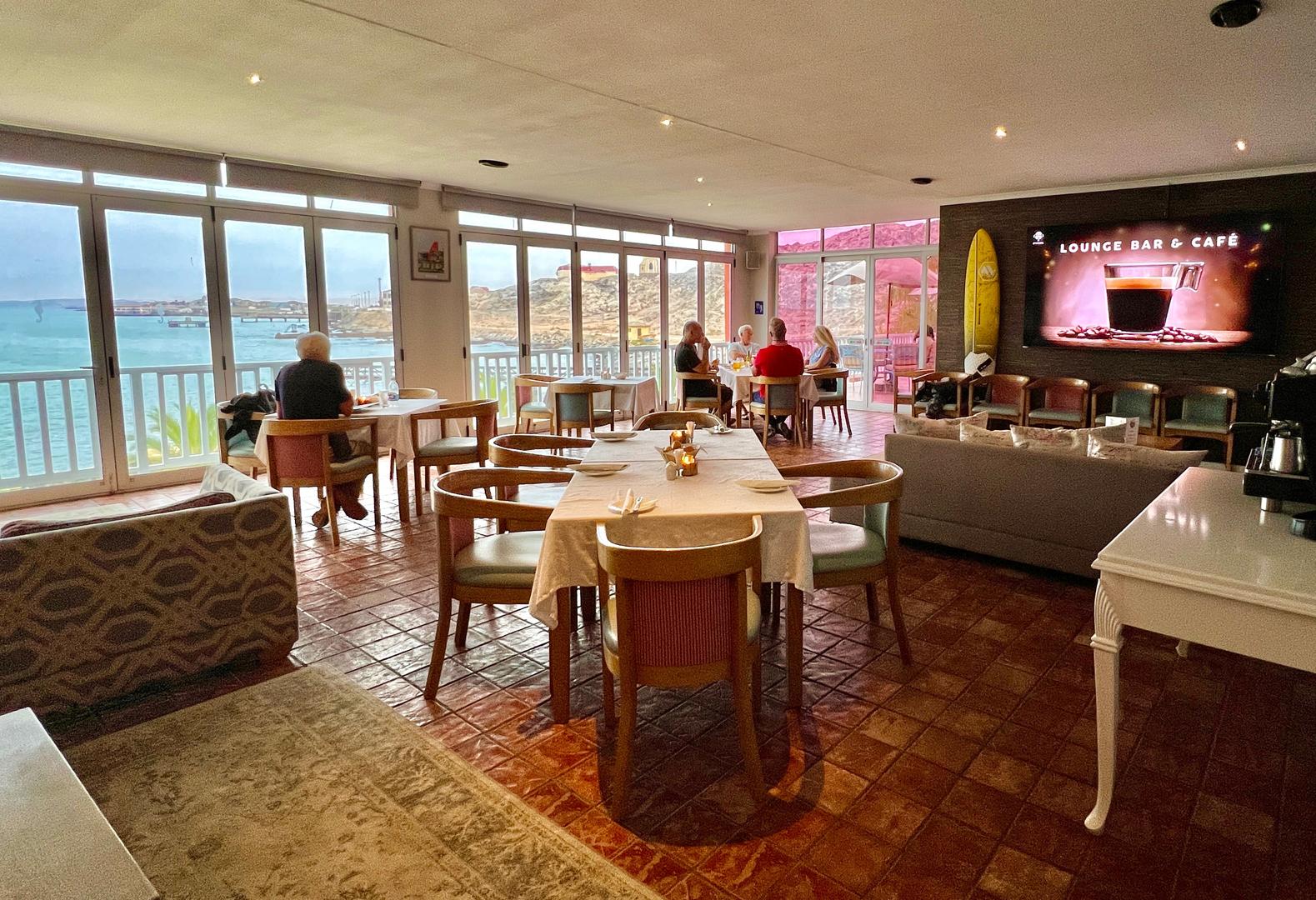 The locally acclaimed Penguin Restaurant with its outdoor terraces for fine weather serves a varied menu including fresh Luderitz lobster. The upper deck Crayfish bar and lounge offers far-ranging sea and desert views. This is the best place in town to enjoy fresh Luderitz oysters, sundowner cocktails, fine wines and of course pure Namibian beer. Additional facilities include a well-kept garden, swimming pool, sauna and complimentary wifi throughout the hotel.
