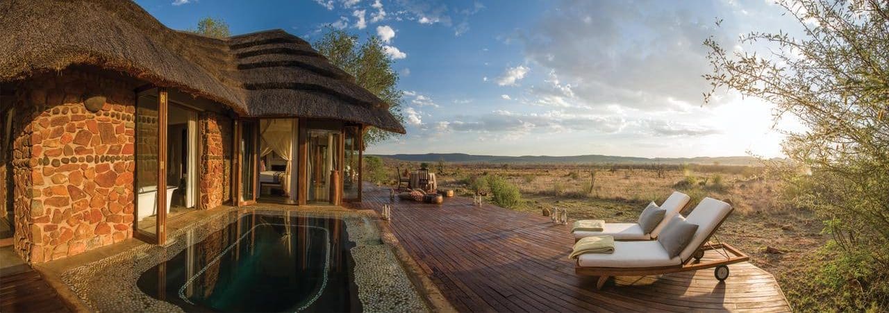Madikwe Hills Private Game Lodge, in the heart of the Madikwe Game Reserve, is one of the most luxurious and glamorous lodges in this malaria-free reserve. Perched on a rocky outcrop, amongst huge boulders and ancient Tamboti trees, Madikwe Hills overlooks the plains of the Madikwe.