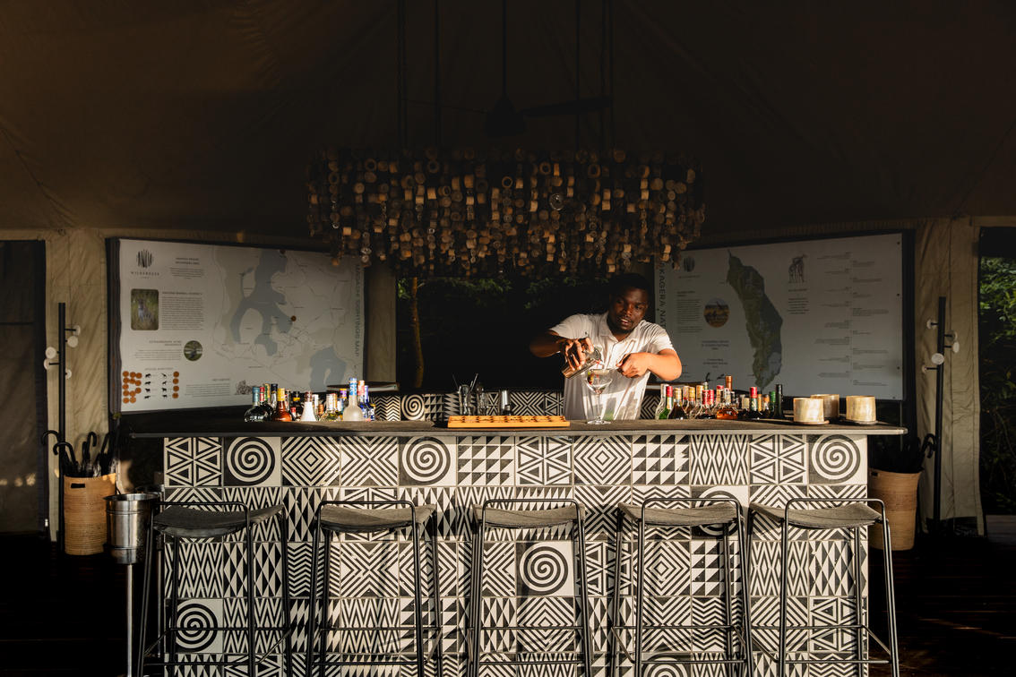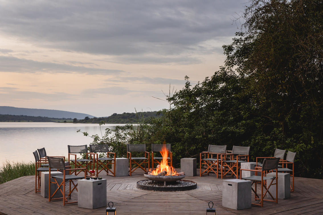 The architecture and interiors pay homage to traditional Rwandan culture. The tented suites at Magashi are charming. Eight spacious and airy tented guest rooms offer uninterrupted views over Lake Rwanyakazinga. Rwandaβs rebirth has inspired a fusion of traditional and modern designs and art, which can be seen throughout the camp. One of these is an art form called 'Imigongoβ. It originated in the Eastern Province of Rwanda, and is formally known as 'Igisaka cyβImigongo'. It is made up of black, white and ochre patterns and linear designs, etched onto a cow-dung tile surface. In dΓ©cor, these installations creates striking features. Khaki is also used quite prominently throughout the interiors, adding a traditional safari touch. Accents of blush in the mosquito nets, cushions and chairs weave in a more contemporary feel.