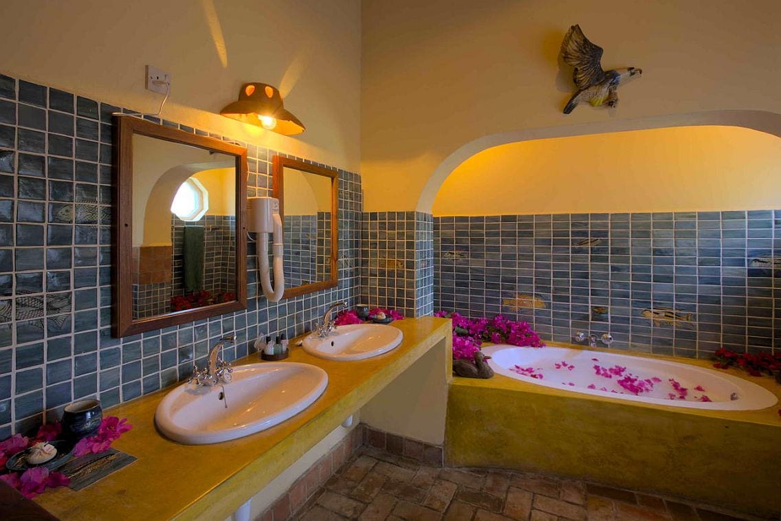 The lake villas have a hand-carved king-sized bed, full bathroom, separate sitting area, locally embroidered bed linen, fan & a private veranda. The beach rooms have similar facilities but are smaller. All have beach front or garden views. The Family beach rooms have two bedrooms sharing one bathroom.