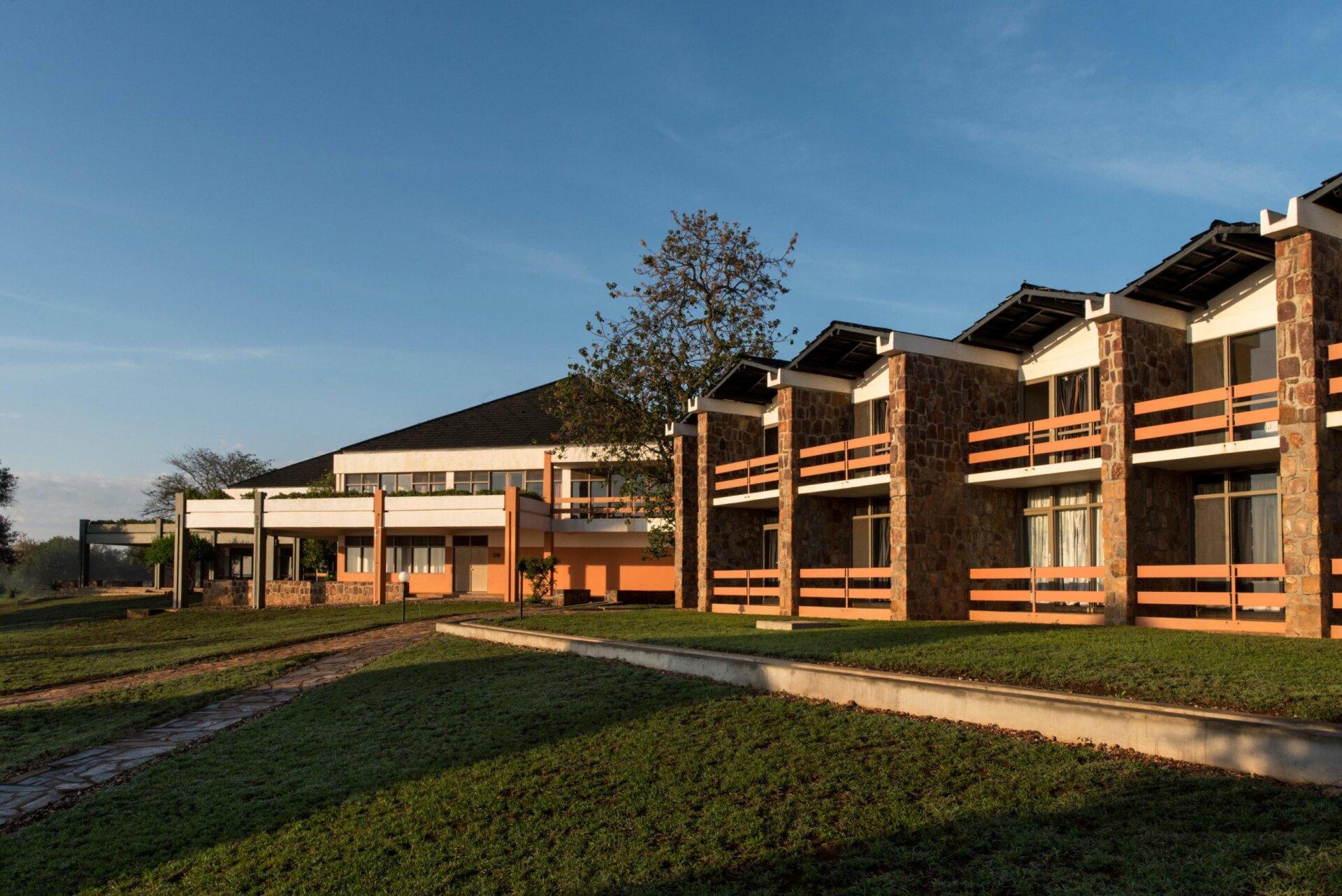 Mantis Akagera Game Lodge stands on a hill at the southern tip of the Akagera National Park elevated above the savannah, with exceptional views of Lake Ihema. With 60 rooms, a conference venue, restaurant,Β bar, and a spectacular pool deck, the Lodge is the perfect home base while conferencing or exploring the conservation treasures of Akagera National Park.