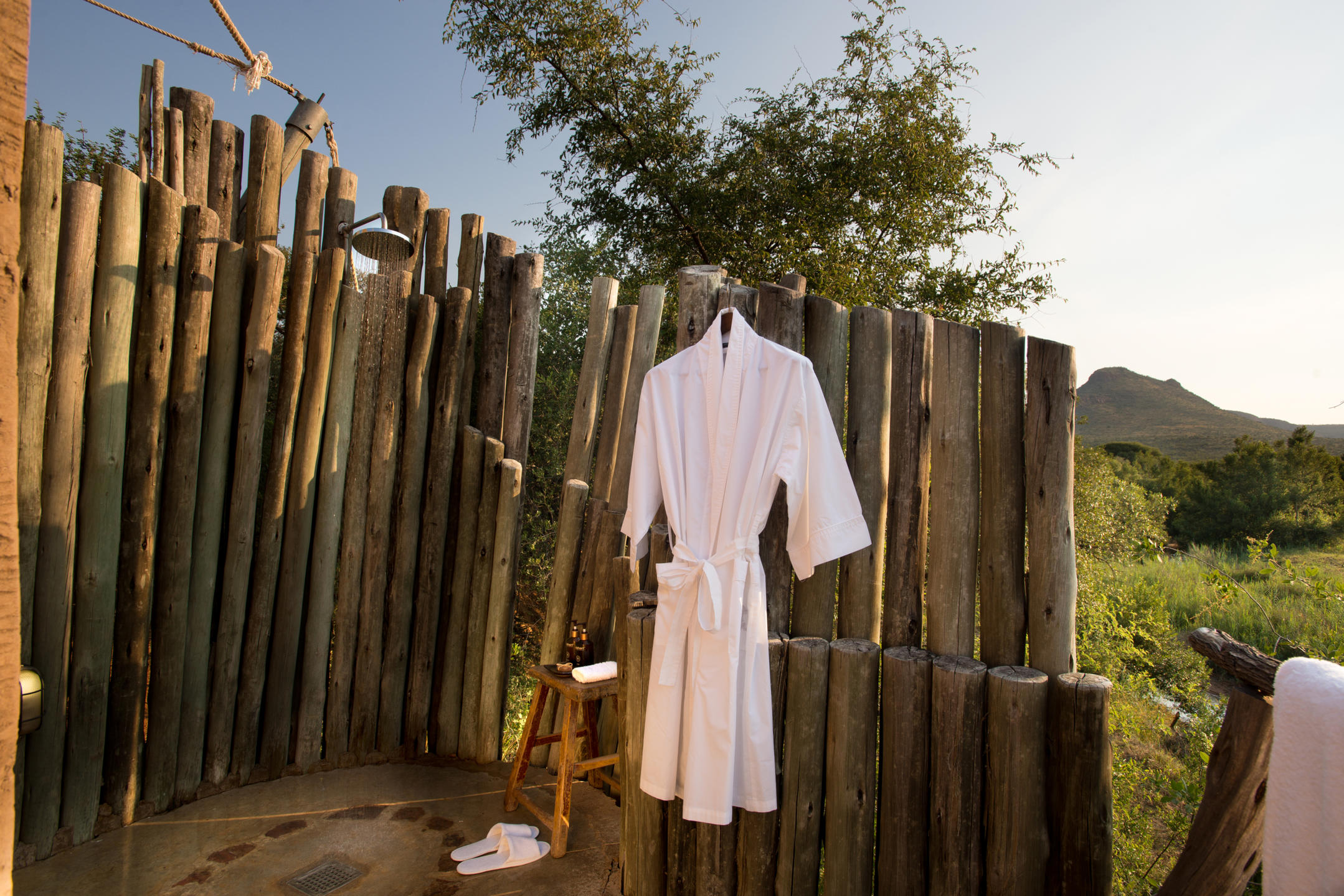 Inside the vibrant colours of Africa are to be seen everywhere. The 15 luxurious canvas and stone suites are reminiscent of Bedouin tents and are exquisitely furnished and decorated. Each has an open plan en-suite bathroom with shower and signature oval bath with open glass doors to the deck for views of the bushveld from your bath. (The bathroom can be enclosed using curtains for additional privacy). Behind the bedroom area is the dressing room as well as a double vanity. Outside there’s an outdoor shower and a private deck overlooking the sweeping plains and meandering river below with glorious views up to the Marakele escarpment.