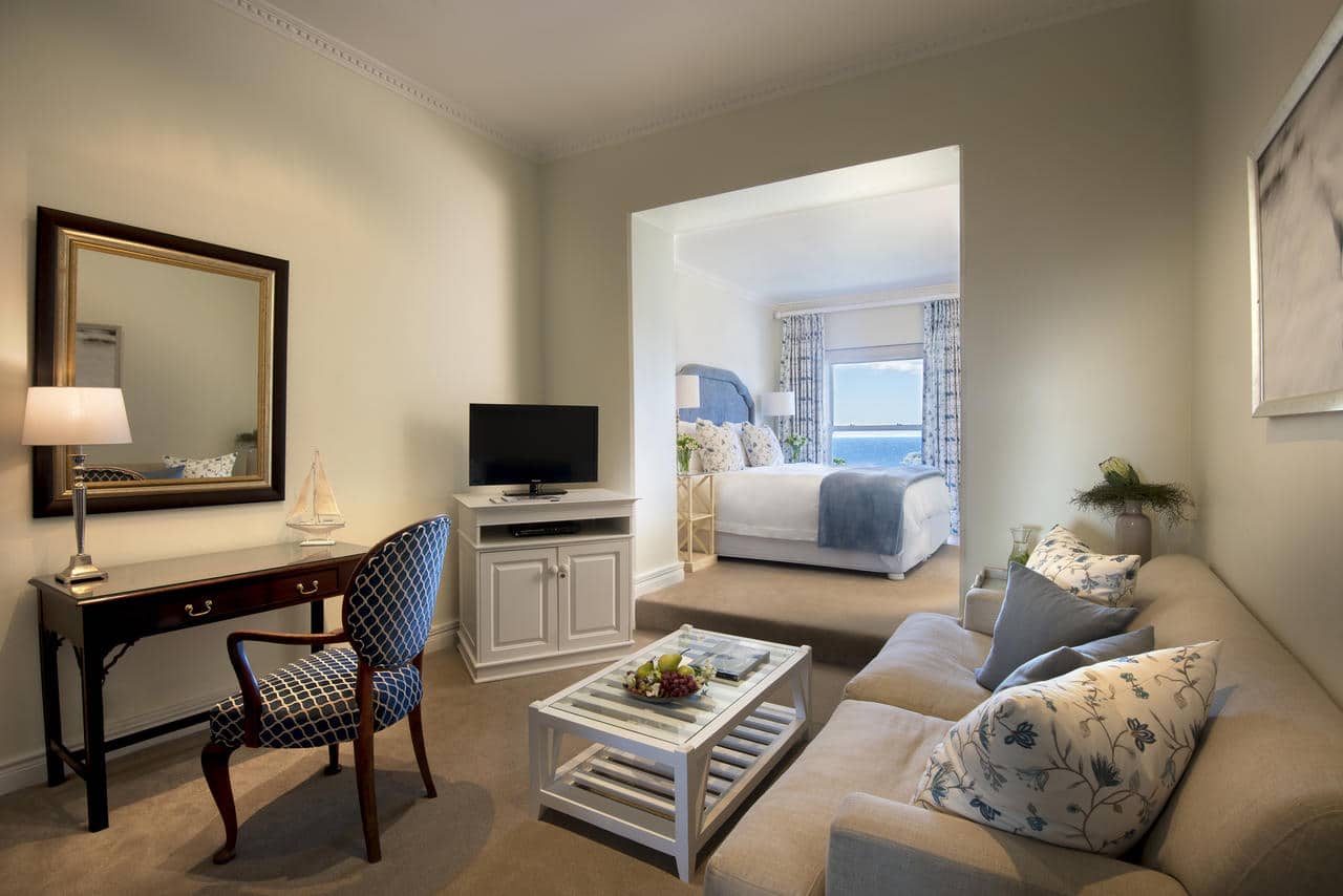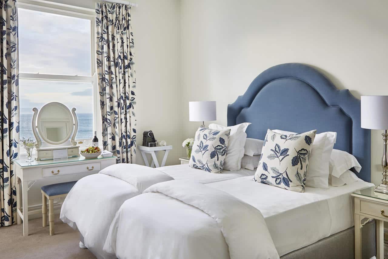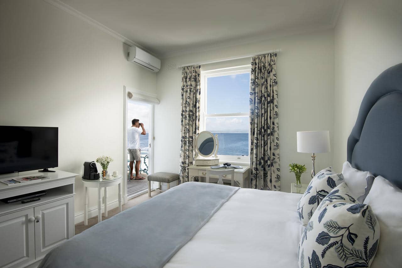 Though a luxurious five star hotel, The Marine Hotel has relaxed contemporary dΓ©cor, with much use of light and bright colours in the 40 bedrooms and suites. All bedrooms have private bathrooms,Β television, telephone, safe and underfloor heating. Views are either to the sea, the courtyard or the mountains. Guests staying in a sea viewΒ room may even see some of the Southern Right Whales from the comfort of their room in season (July to October).
