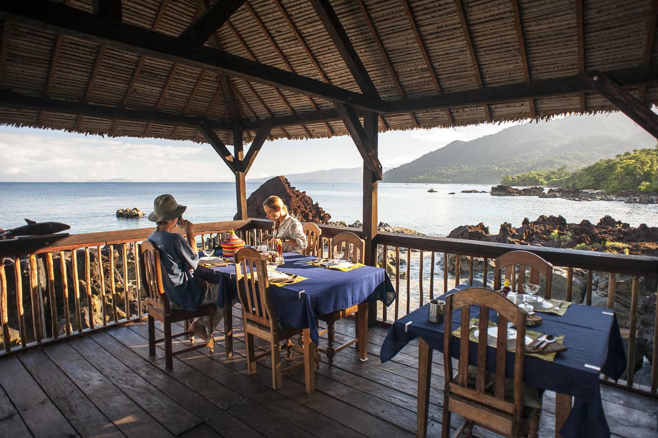 From the comfort of the lodge, explore the wildlife and beauty of this natural paradise with activities including forest walks, snorkelling, kayaking, traditional pirogues, swimming in the sea and the crystal clear streams, whale watching, fishing and experiencing sustainable life in the rainforest with the local Malagasy community. The sea kayaks are ideal for exploring the islands, reefs, rivers and deserted beaches of the sheltered coastline or just to watch the magic of the sunset on the forested mountains.