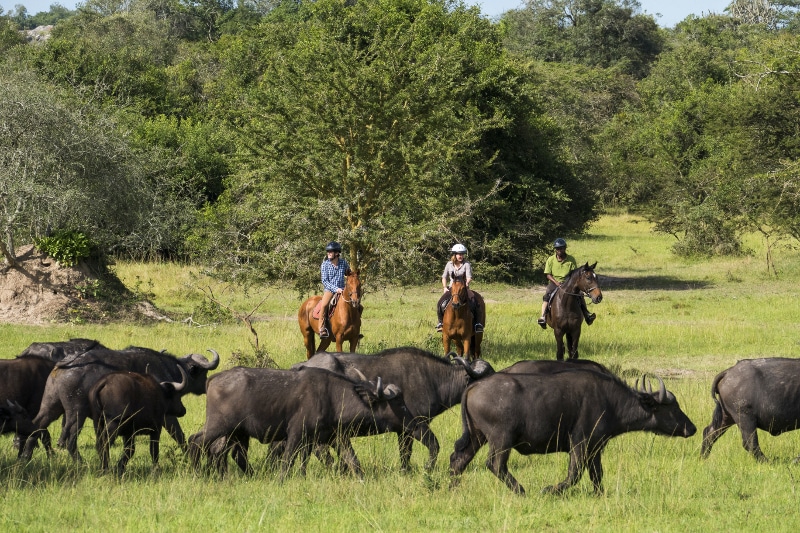 Horse safaris are an awesome way to see wildlife around Mihingo Lodge. Without the noise of an engine you can hear so much more and you really feel part of nature. Riding a horse means you often get the chance to see the more timid animals. If you are very lucky you may see eland and buffalo.