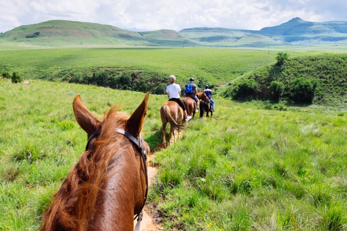 This 1000 hectare resort offers guided hiking (with daily guided walks departing at 9:00 am), plenty of hiking trails with the Montusi hiking guide, horse riding for riders of all levels, fly-fishing, birding and a swimming pool. Take a swing on the flying trapeze at the All Out Adventures centre (as well as giant trampolining, abseiling and other interesting options). The famous walks of the Northern Drakensberg such as Tugela Gorge are only 15 minutes drive away. On request Montusi Mountain Lodge can arrange day hikes to the top of the Amphitheatre for an unforgettable hiking experience for those who have a head for heights (as the last ascent is via vertical metal chain ladders.)