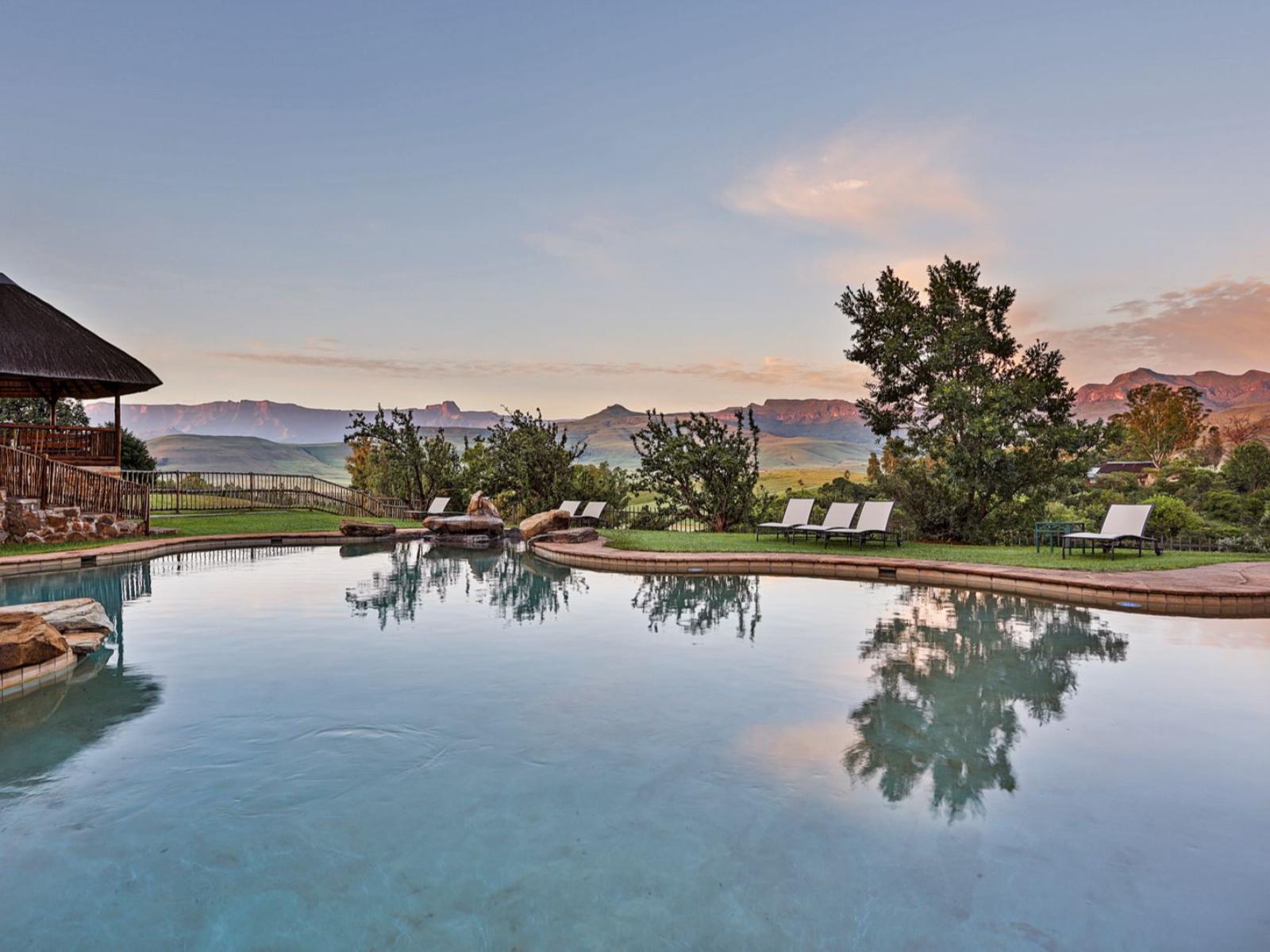 This owner-run lodge offers personal and friendly service. 16 thatched suites offer some of the most luxurious accommodation in the Drakensberg. All suites have en-suite bathroom with shower and bath, as well as a lounge with TV, covered terrace, fireplace and spectacular views of the Drakensberg mountains. Little touches such as bathrobes, fruit bowls and a minibar stocked to your requests add to your comfort. There are also some two bedroom self-catering cottages sleeping 4 plus 2 kids which can be booked via the lodge.