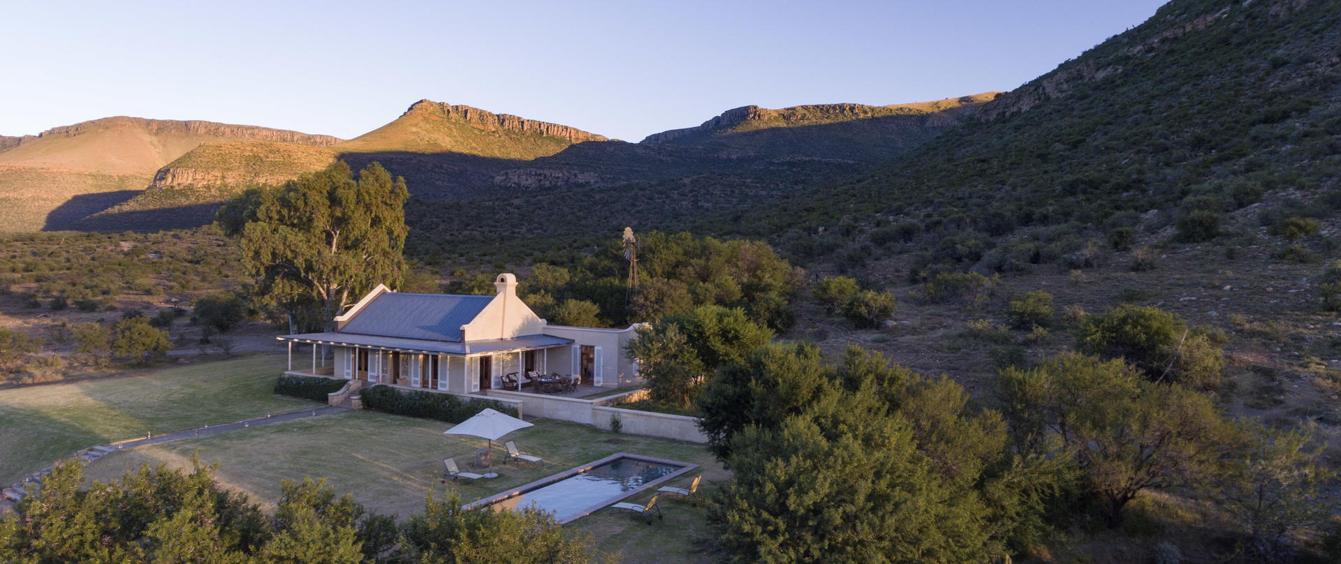 If remote R&R is what you need, then the on-site spa and the constantly evolving menu of wholesome, locally inspired, refined cuisine, will do wonders for body and soul. Accommodation is in three beautifully restored, gracious gabled manors, each with spacious gardens and swimming pools, and one with an additional secluded cottage. For those looking for something under canvas, two luxurious and privately located en-suite safari tents provide sweeping views over the reserve.