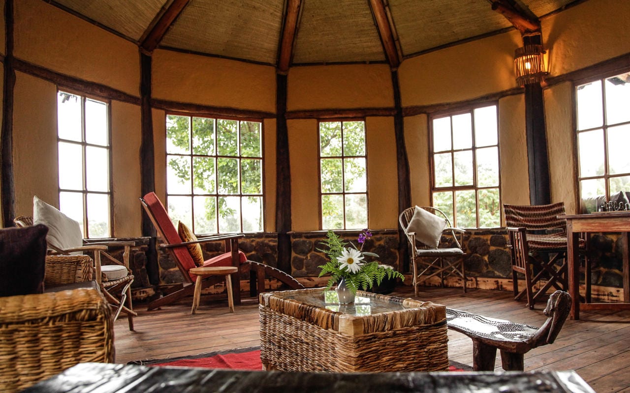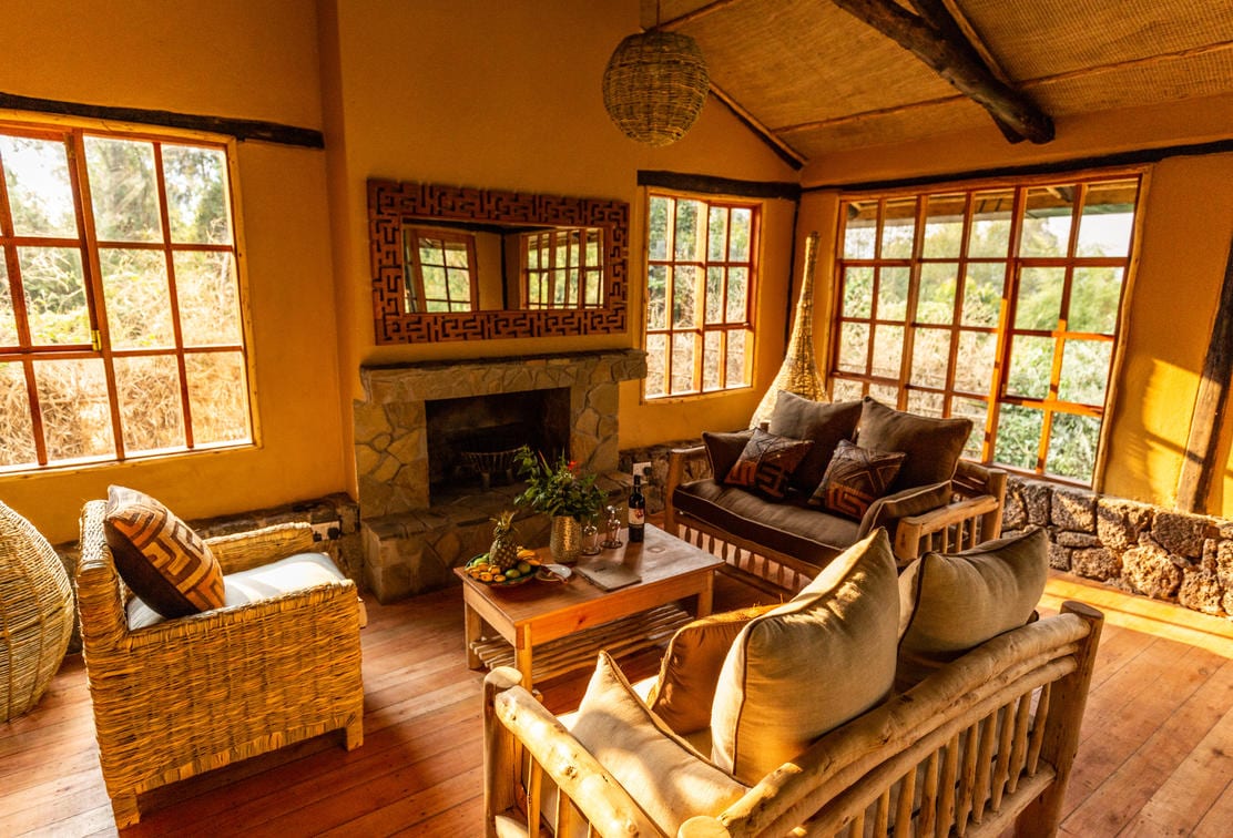 Nestled in the foothills of the Virunga Volcanoes, Mount Gahinga Lodge is an exclusive Uganda adventure lodge that has the impressive backdrop of three of the volcanoes themselves. Its rustic charm creates an absorbing atmosphere of tranquility and history.
