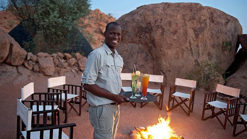 Tucked away amongst the giant boulders, the plunge pool and sun deck is perfect for hot days. An excellent dinner is served in the candlelit boma around a crackling fire whilst breakfast and lunch are on the deck overlooking the desert vistas.