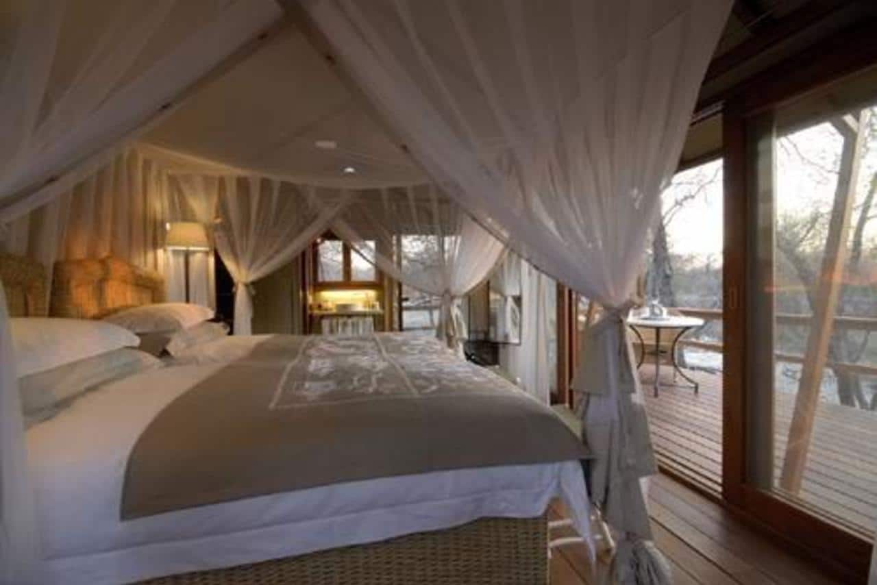 Three large windows stretching from ceiling to floor allow for plenty of fresh air during the night and make the most of the bush views during the day. The open-plan bathroom has an enclosed toilet and a shower which can be opened to the outside if you wish. The furnishing of the tent is minimal, comfortable and has a light feel to it. Each tented room has a mini bar, tea/coffee facilities, safe, telephone, mosquito net, hairdryer and air-conditioning to cope with the warm afternoons. Whether you enjoy the privacy of your veranda or the comfort of your tent, the tranquility of the bush is guaranteed.