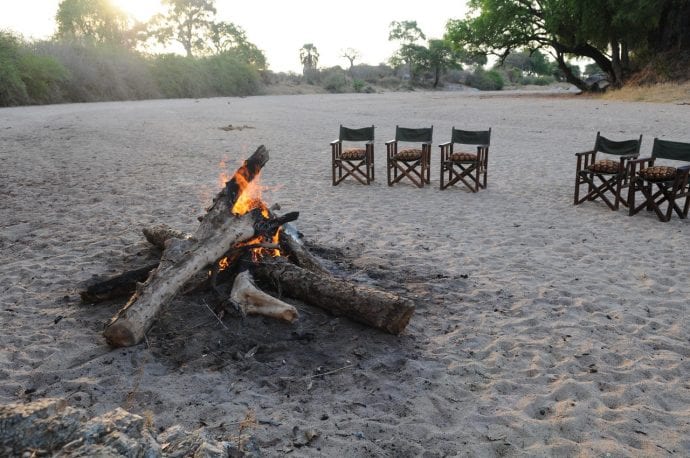 The food is fresh and delectable and whenever possible they serve dinner outside. This is a truly magical experience – frequently sited in the sand river – with scores of kerosene lanterns, a camp fire and a buffet presented on a charcoal-laden sand bolster. You can elect to have breakfast in camp or out in the bush, in which case you will probably leave camp a little earlier.