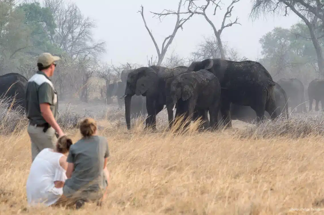 Often, a game drive away from the lodge becomes so unnecessary as the elephants and wildlife meander through the camp. Sundowners are then enjoyed from the safety of the decks or lengthy walkways, only meters above these animals as they traverse below you and go about their feeding.