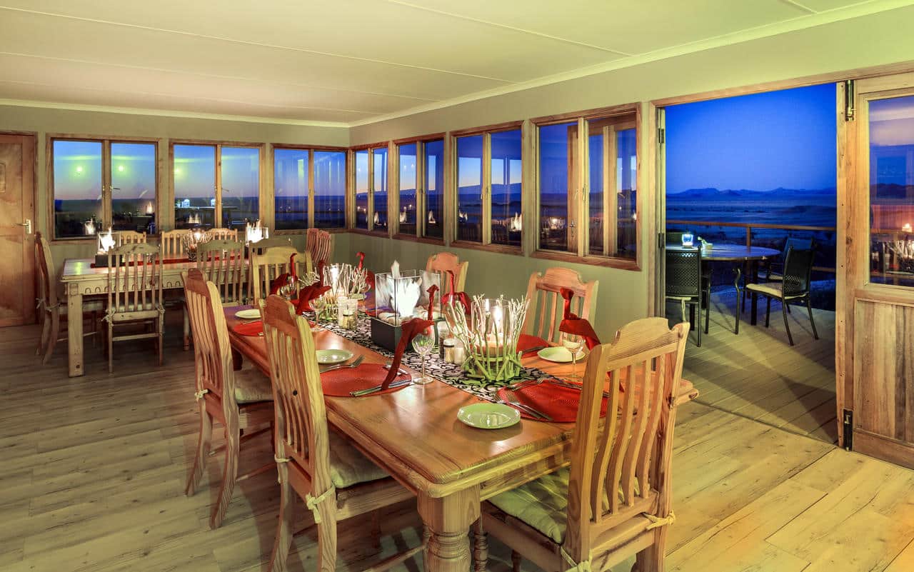 The central area’s wide deck has unrivaled vistas and is the ideal place to have a sun-downer as the sun bathes the landscape in gold. Sunset is followed by a delicious dinner under a blanket of twinkling stars.Β Enjoy the relaxed ambience while cooling off at the pool, watching the gemsbok arrive at the waterhole. Β Escape from the world with the walking trails into the dunes.