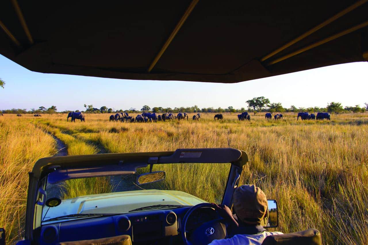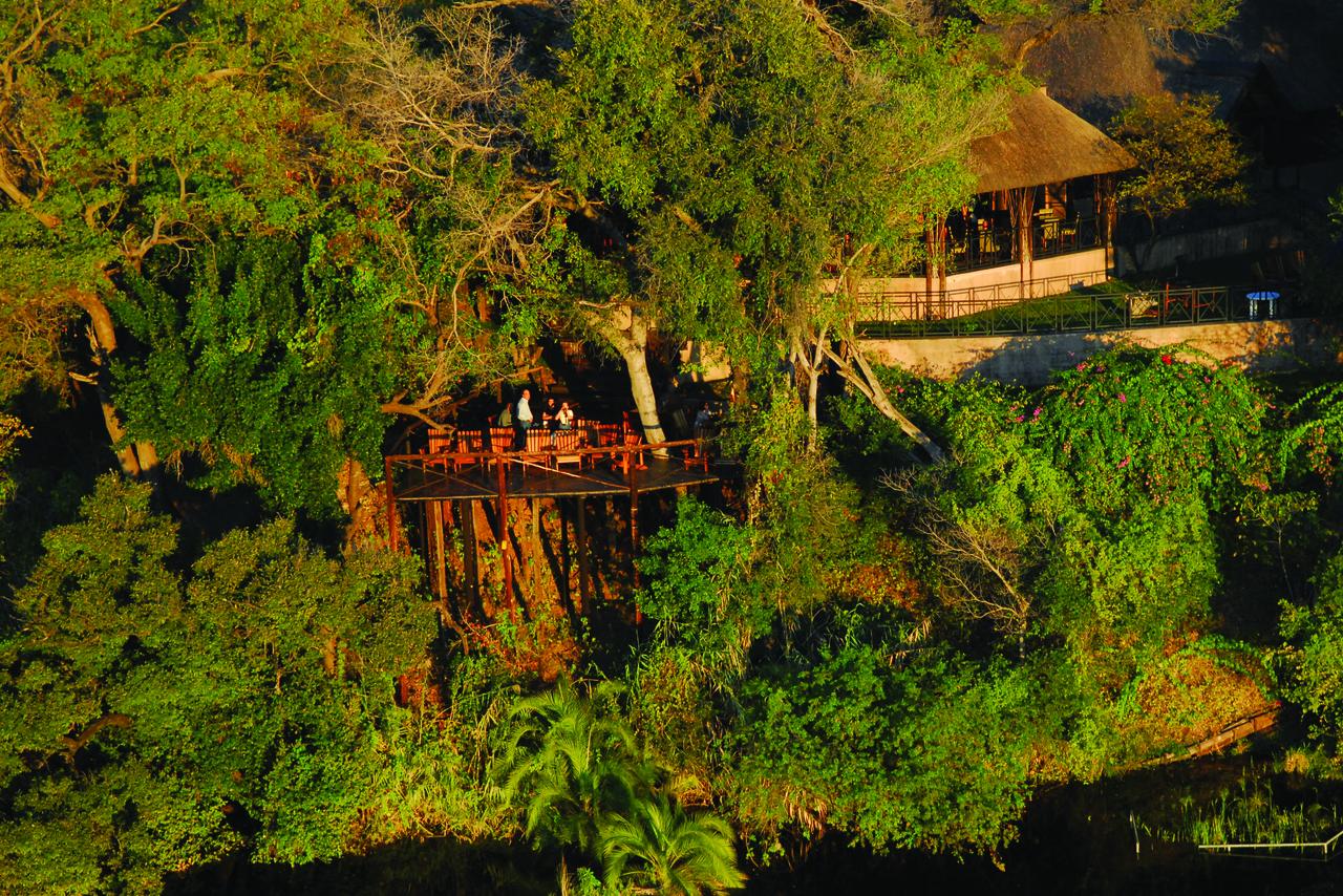 Namushashaβs impressive central entrance with wooden chandelier and carved animals leads you into the attractive lodge set between wild syringa trees in true African style.Β The dining room, with its high thatched roof, opens on the sides to the river views.