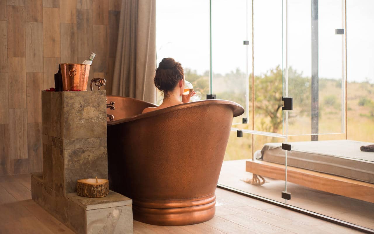 Nimali Mara comprises of 8 suites and 2 honeymoon suites. The honeymoon suites have a private plunge pool and lounge area, which can convert into a second bedroom when travelling with children. The external walls of the suites are canvas while the front is glass. This is to maximise views and allow you to immerse yourself in nature. The tented suites have fixed wooden doors, double showers, twin vanity, a copper bath tub and fittings.