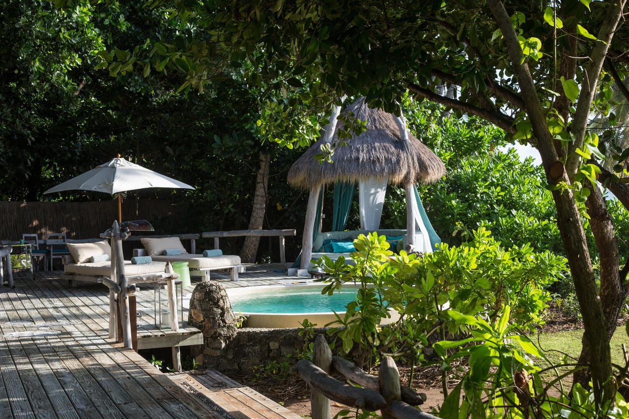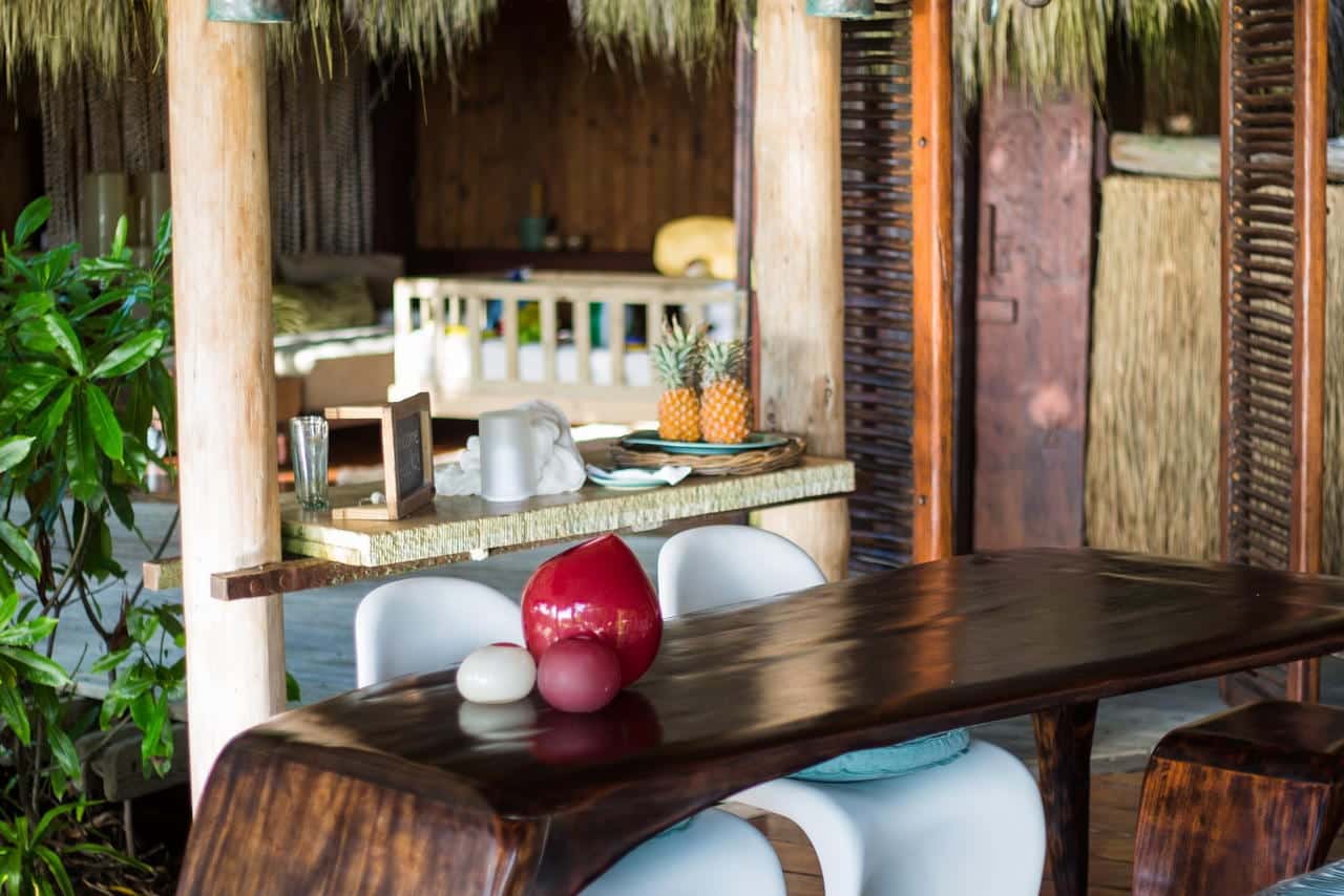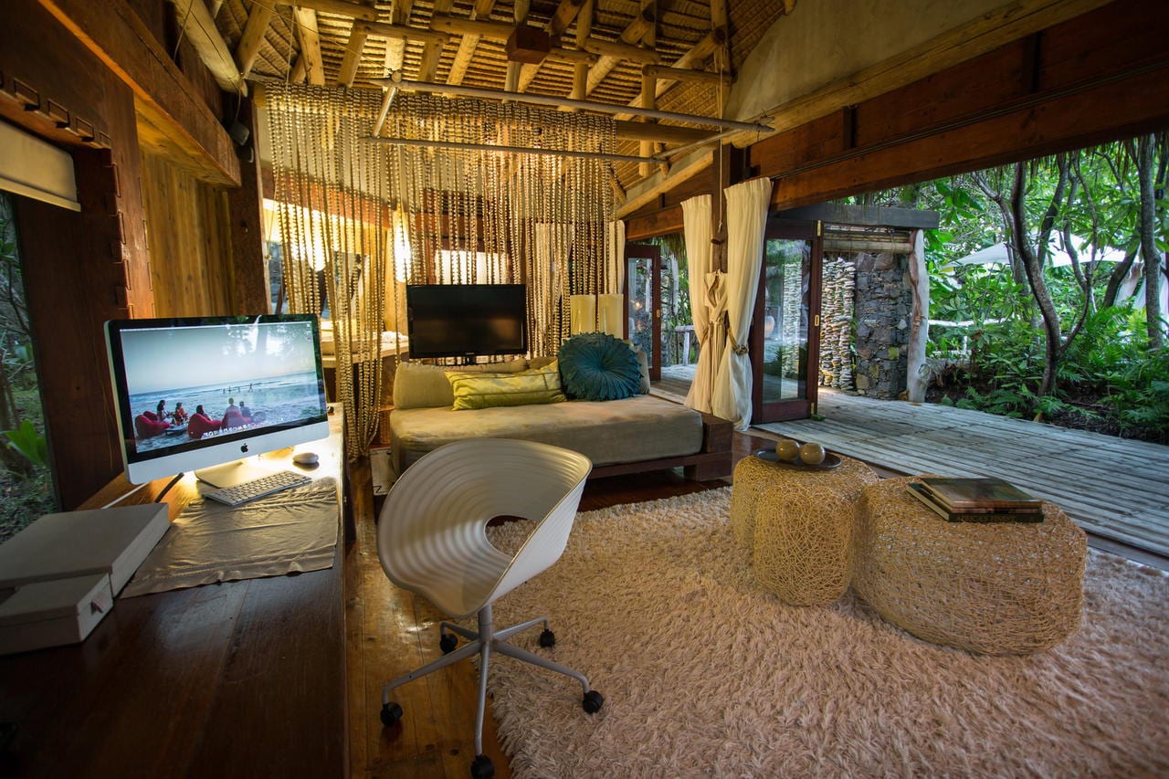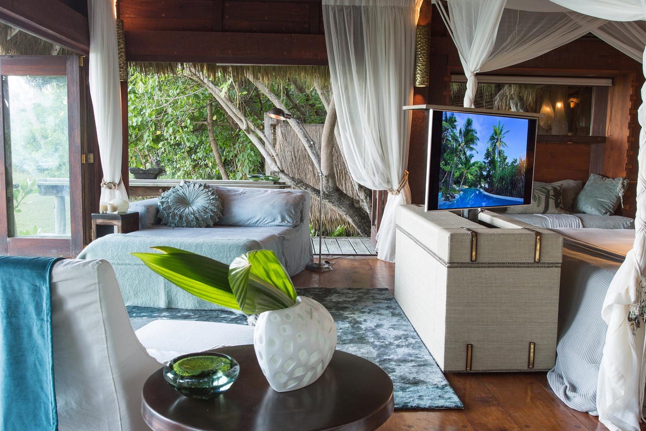 There are just 11 hand-crafted villas on the whole island, each a massive 450mΒ², are located one of the island’s pristine beaches. The philosophy behind them was that you could spread out and truly feel at home and not need to leave your villa if you wished. Each villa has a main bedroom and a second bedroom (available for children or teenagers). Alternatively this second bedroom can be converted in a study. All facilities that you could want are included namely air-conditioning, pukkah pukkah fans, retractable sliding doors to allow uninterrupted views, satellite television, DVD/CD system and internet access. The bathroom has a marble bath and two showers, one indoors and one outside. The private plunge pool, extensive wooden deck and covered ‘sala’ complete the picture.