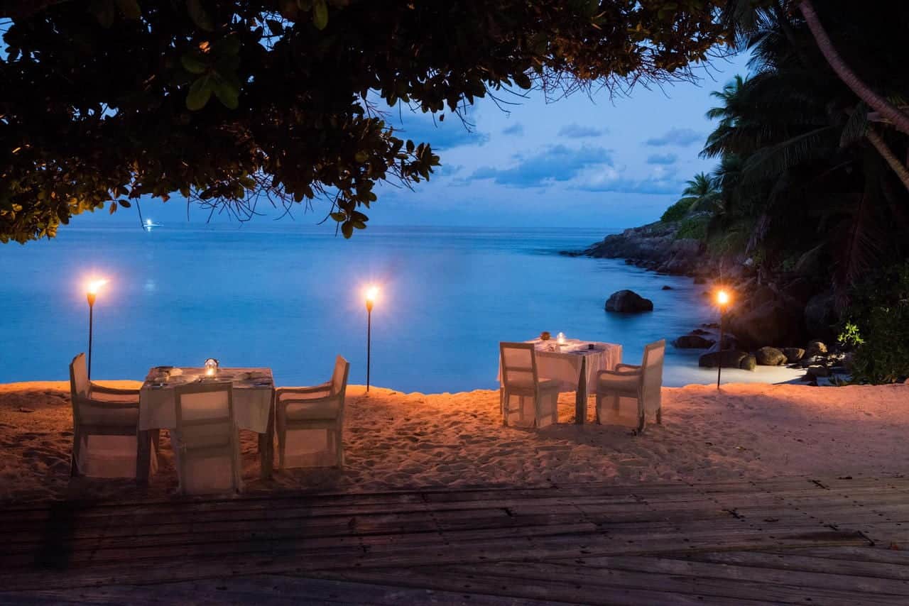 A lounge, dining room and library, scenically located health spa and gym, world-class dive centre, and a rim-flow swimming pool are all built into a granitic outcrop. A sunset bar and restaurant are tucked away on the western beach of the island.