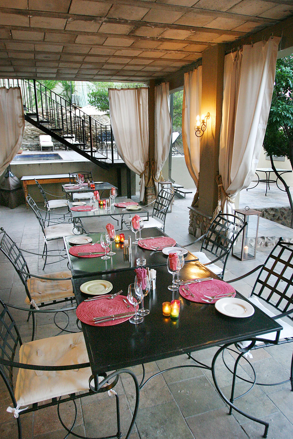 Rooms are spacious with a simple North African influence and earthy dΓ©cor. There’s a choice of standard or luxury rooms and one executive suite. They are all decorated with wrought iron furniture and soft natural colours. Some of the Superior rooms have funky bathrooms incorporating organic oversize baths. Standard rooms are smaller with more classically elegant furnishings. All have satellite television, air-conditioning, minibar, safe, tea/coffee facilities and kimonos. Each opens out onto a spacious veranda with tables and chairs under shade.