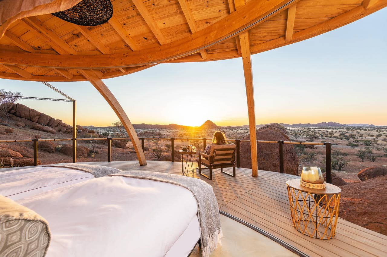 Onduli Ridge, named after the resident giraffe of the area, is built at the base of two south facing granite outcrops that are connected by a ridge. This location allows for magnificent views of Namibia’s highest mountain, the Brandberg, to the south and the dispersed cathedral-like granite inselbergs to the north.