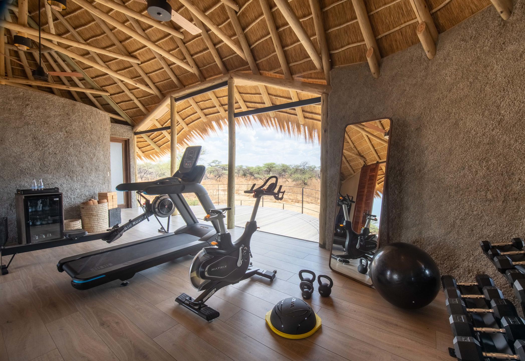The camp’s central guest area boasts a comfortable lounge, a cocktail bar, and an expansive deck. The open-plan dining space features an interactive show kitchen and an all-day pantry stocked with delightful treats. One of Camp Kala’s standout attractions is the ground-level photographic hide, providing a unique vantage point for observing the waterhole’s wildlife. Additional amenities include a gym, spa, and a serene yoga deck.