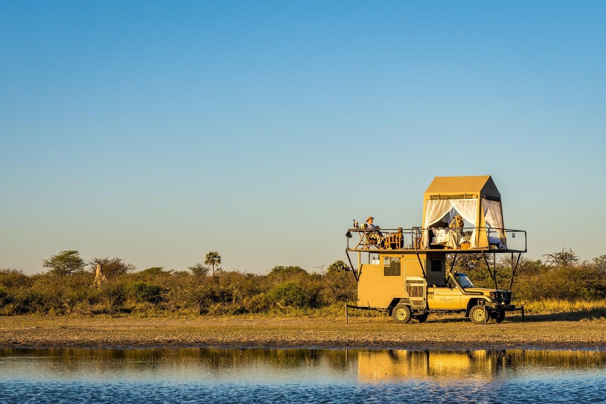 Designed for the discerning luxury adventure traveler who values both authenticity and comfort, the camp accommodates just eight guests across four elegantly designed suites. Each spacious, open-plan suite features a plush bedroom, a cozy lounge with a state-of-the-art air-cooling system, and a stylish bathroom equipped with custom double vanities, a freestanding bathtub, and a generous shower. A private deck extends from each suite, complete with a plunge pool, wood-fired hot tub, and a shaded Sala with an outdoor daybed—ideal for relaxing while observing wildlife or even spending a night under the stars.