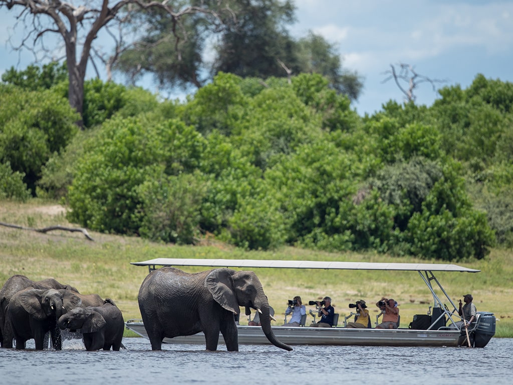 The Pangolin Chobe Hotel sits on the plateau overlooking The Chobe River and Namibia’s Caprivi floodplains which stretch out to the far horizon. The Chobe National Park boundary is a few hundred meters away. Meaning that with the close proximity to the gate you are more often than not the fist vehicle through the gate for game drives. The hotels boats are moored on the river directly below. And its a quick five minute transfer to get to them and then straight into the park.