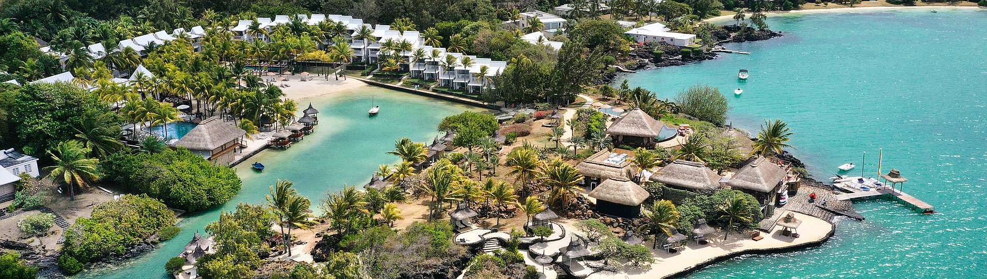 The hotel curves charmingly around a secluded cove at Anse la Raie, on the Mauritius North coast, with a unique private beach with plenty of private ‘lovenests’ for couples. It’s about 5km from Grand Baie, far enough to stay peaceful but close enough for the shopping, buzz and amenities to be only a short taxi ride away. At the far end of the peninsula, the infinity pool has a panoramic view over the turquoise lagoon and the northern islands, whilst the Indigo restaurant and bar offers a vibrant ambiance overlooking the ocean. The hotel is protected from the trade winds throughout the year and so offers a tranquil serene place to relax in Mauritius.