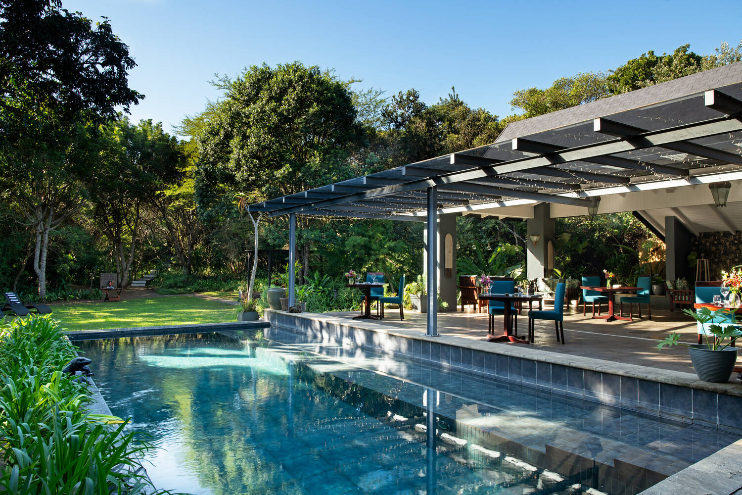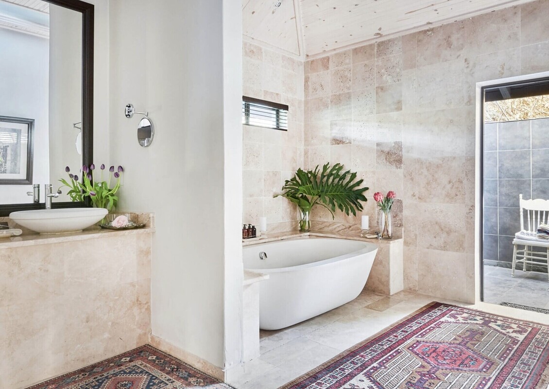 This lodge has only 8 individually designed suites, featuring select pieces from a private collection of famous South African artists, Persian carpets and luxury linens. The oversized bathrooms with garden views promise relaxation of the first order. All rooms are completely private and secure behind your own garden walls, with patio and your own plunge pool.