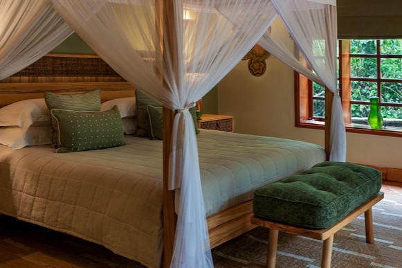 There is a choice of simple but comfortable accommodation. Eight luxury safari tents are raised on wooden platforms under thatch, each with a private veranda overlooking the forest. Tastefully decorated in African style, they have comfortable twin beds and en-suite bathrooms. Primate Lodge Kibale also offers 7 stone cottages and a tree house for the more adventurous. A solar power system handles lights and water and there is an environmentally sensitive water-management and harvesting programme.