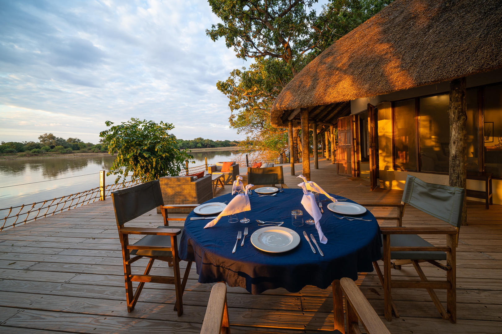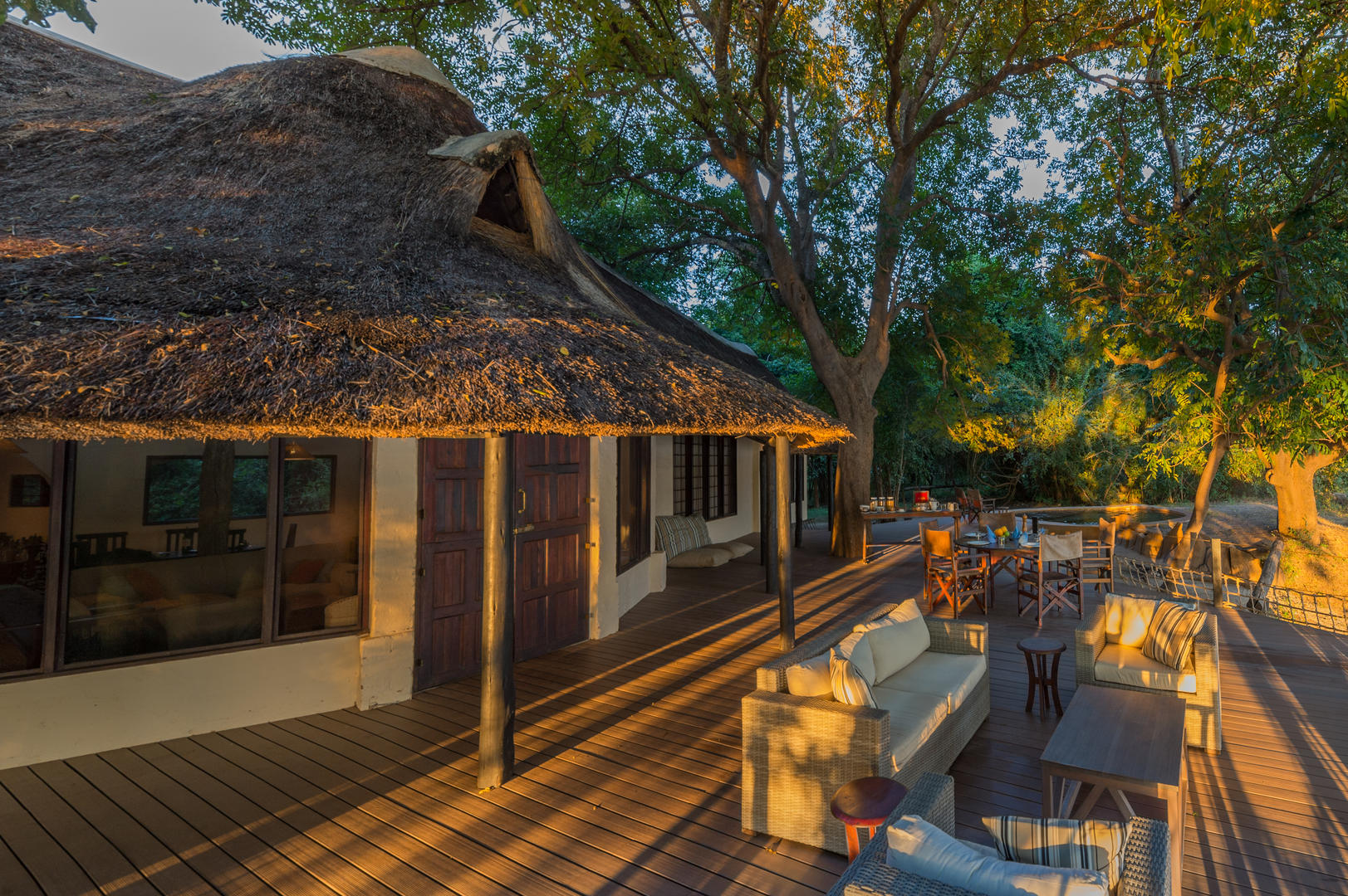 Robin’s House lies on the edge of Nkwali Camp overlooking Zambia’s South Luangwa National Park. This private homestead is taken on an exclusive use basis and is ideal for families or friends looking for a little privacy whilst on their Safari. It is set apart from the main camp, on the banks of the Luangwa River (and is in fact closer to essential camp facilities such as the swimming pool). Robin’s House is shaded by a grove of large trees and has an amazing view of the riverΒ and the animals coming down to drink.