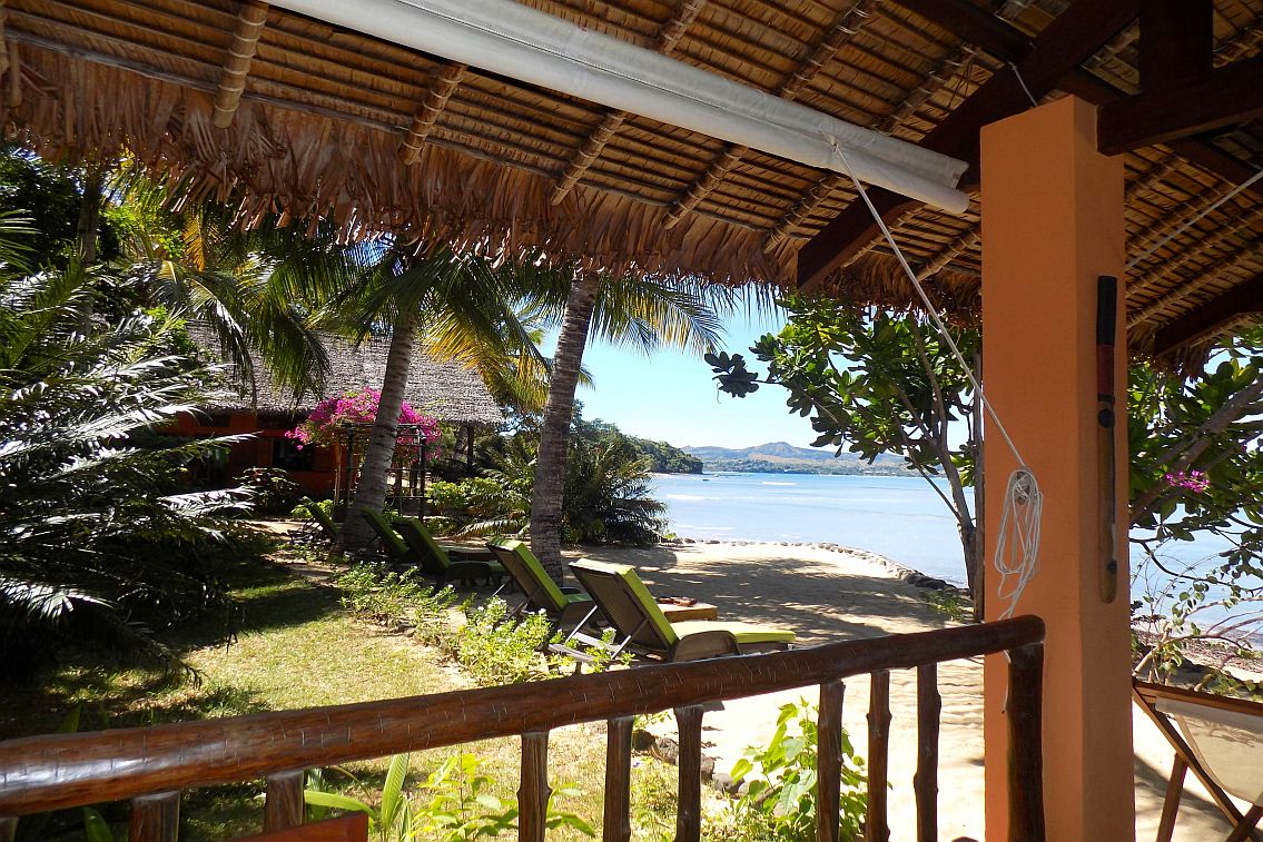 The lodge is well run with friendly staff who all speak good English. Its not a grand place but has a wonderful relaxed holiday ambience with a living area where lunch is served, an expanse of upper terrace with beach sand, sun loungers and deck chairs and then steps down to the beach. The whole lodge is set in well-tended topical gardens and surrounded by lush forest behind the lodge.