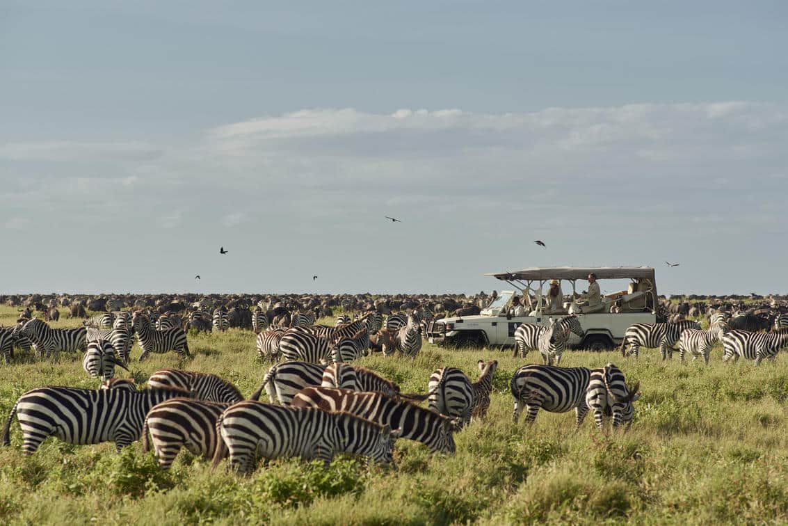 The Serengeti is home to the great wildebeest migration, and the short grass plains around Kusini Camp provide the perfect setting for the wildebeest as they mass around this southern part of the Serengeti in the early summer months of each year (January to March especially).