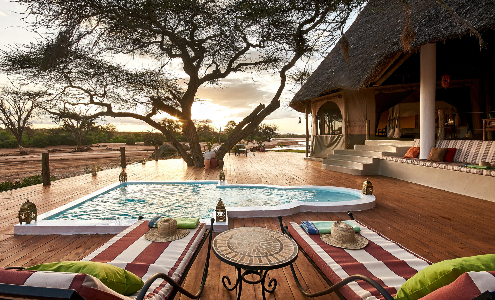 Sasaab Lodge has a fabulous location on the high banks of the Ewaso River, just west of Samburu National Reserve and boasts spectacular views as far as Mount Kenya.Β Sasaab has a contemporary North African style and the design is based on Moroccan construction principles, in which African heat is a main consideration.