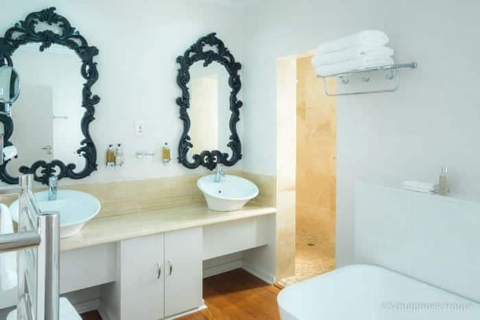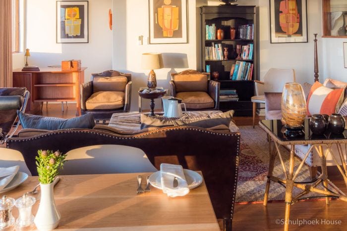 The House comprises fifteen rooms, each one offers thoughtful decor touches and luxurious amenities. Rooms and bathrooms are individually decorated with a collection of fine original South African art and original pieces of furniture, the focus being on mid-century.