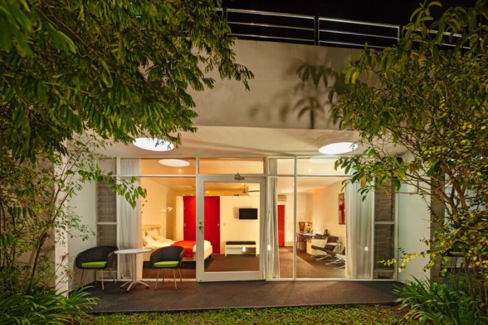 The tranquil open layout of Serene Estate gives you direct access on three different levels to the rooms, lounge, breakfast room / big terrace with roof garden and fish pond. In the garden, there’s a good-sized rimflow swimming pool and martini deck. From the rooftop garden you can even see the ocean beyond the sand dunes.