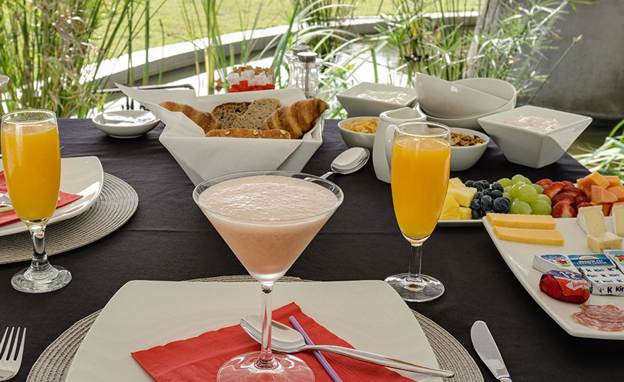 Luxurious Park View rooms have big windows with a view to the gardens and the Wetland park beyond. From the comfort of your room or private terrace you can see some of the wildlife like bushbuck, red duiker, monkeys, mongoose, and a variety of birds. After sunset you hear the loud call of the bush baby. Hippos can be spotted from a short distance and very occasionally, even a leopard.