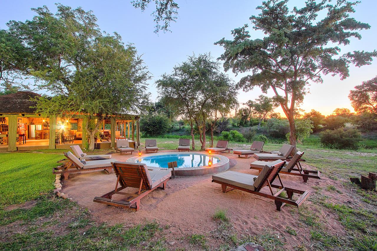 The main areaΒ at Shindzela Tented Camp encompasses a covered dining tent under thatch, kitchen, and a central African fireplace – a perfect spot to relive safari experiences around the fire. Relax and cool off in the inviting plunge pool.