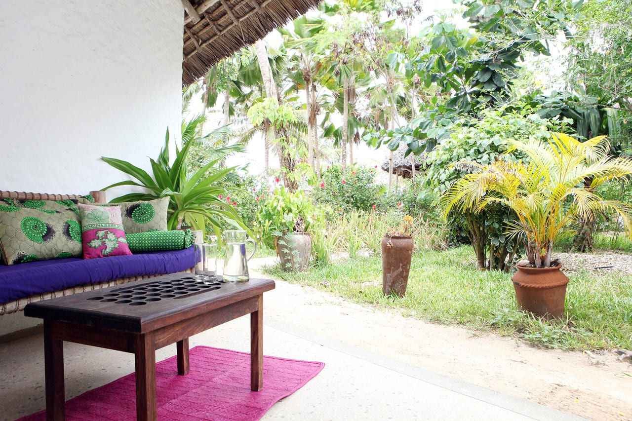 Accommodation at Shooting Star Lodge is built to an extremely high standard in traditional Zanzibari style with white lime washed walls, high beamed ceilings and large windows.Β The Villas and Sea View Cottages all contain beautifully hand-carved Zanzibari beds draped with colourfulΒ mosquito net canopies.Β All have matching Tanzanian ‘vintage’ batik bed covers, along with coconut wood wall mirrors and other hand-made teak wood furniture.