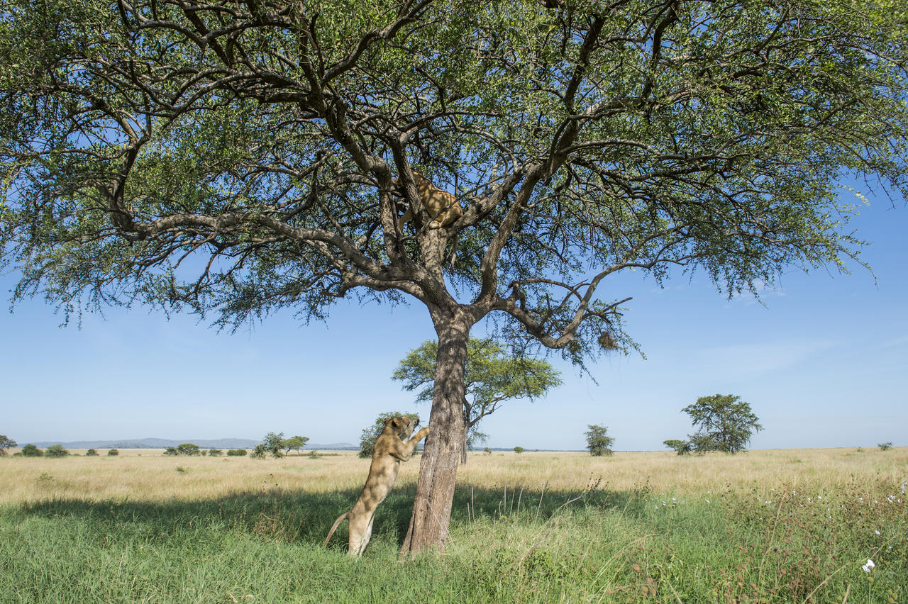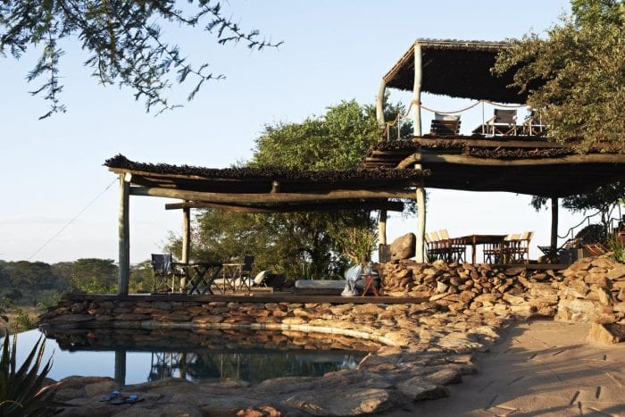 Situated in the western corridor of the legendary Serengeti, Singita Faru Faru overlooks a natural waterhole and the tree line of the Grumeti River. Due to the natural watering hole in front of Faru Faru, guests needn’t ever leave as here the safari comes to you. The surrounding grassland is so fullΒ of wildlife that youΒ can lounge in the swimming pool overlooking the waterhole, recline in the Lodge’s elevated viewing decksΒ orΒ unwind in the comfort of your luxurious room and watch as predators and prey are drawn right up to the lodge.