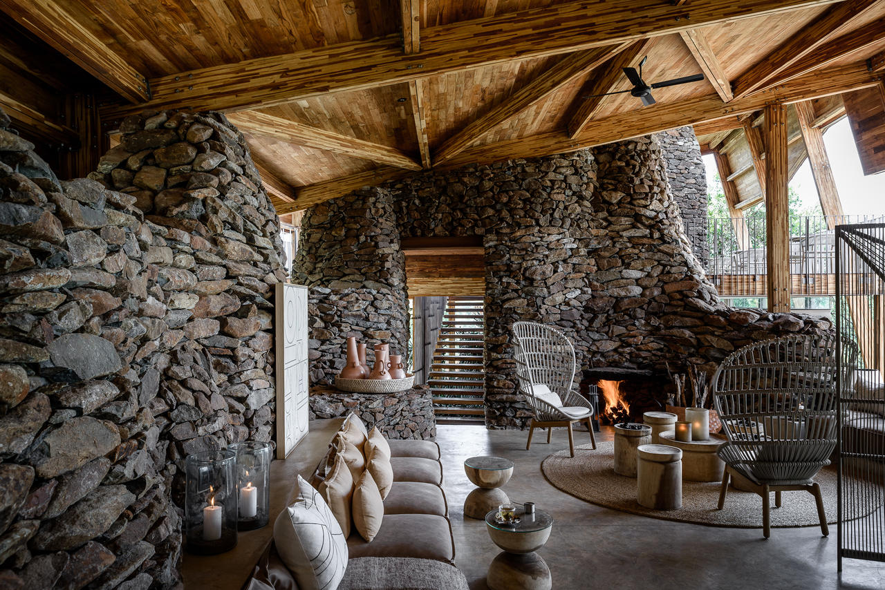 The nine stone, canvas and thatched suites (including a family suite and a two-bedroom villa) have the air of a classic safari camp, yet the interiors offer the ultimate in contemporary chic with panoramic glass windows, mirrored room dividers and freestanding baths. The result is very atmospheric. The wall facing the riverine bush is largely glazed and gives superb bush views. The suites have air conditioning and some have a choice of interior or exterior showers.