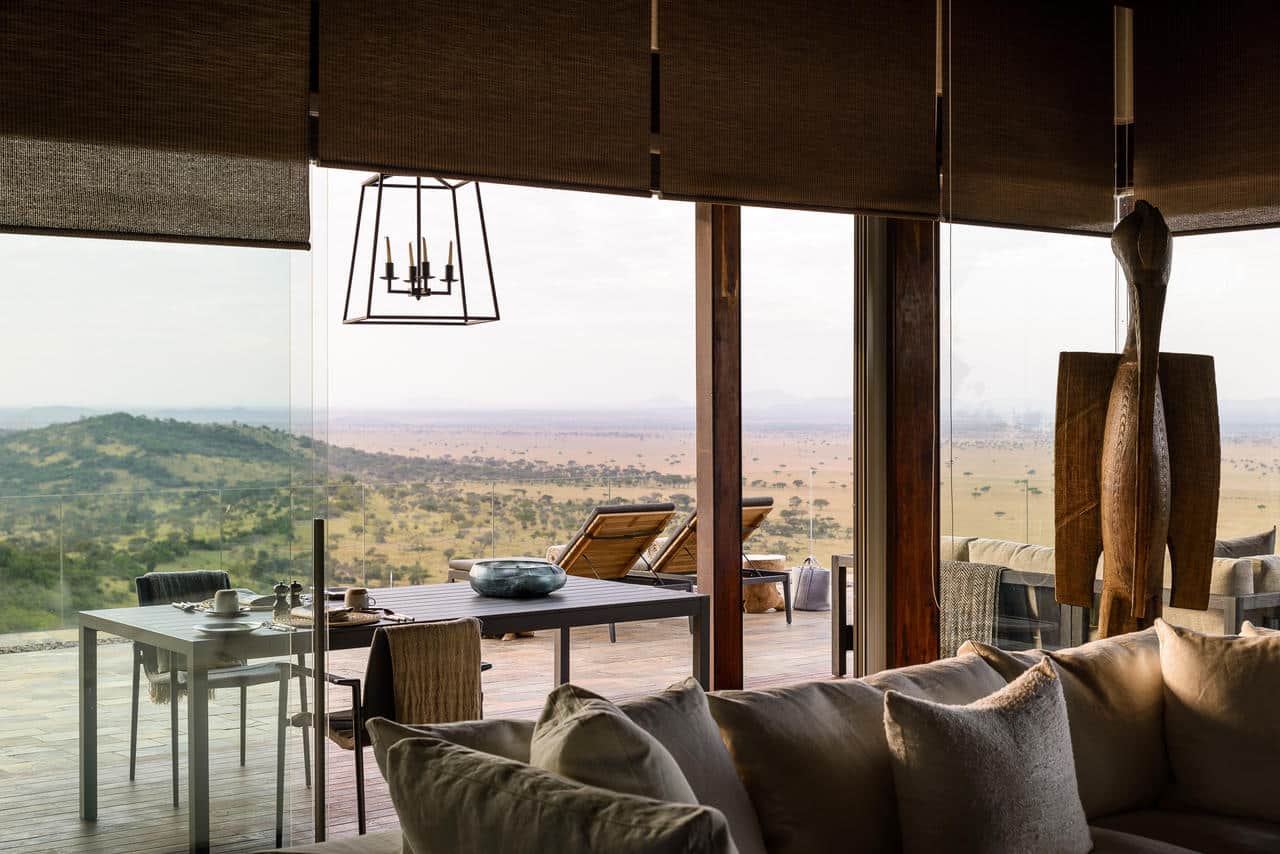 Singita Sasakwa Lodge is located in the 350,000 acres of the Grumeti Reserves in northern Tanzania. This remote wilderness is part of the Serengeti Mara ecosystem and has all the attributes without the people. The lodge rambles along the rocky promotory of Sasakwa hill high above the rolling plains. The view from the spacious verandas surrounding the lodge is almost endless over the Serengeti plains below to the distant horizon. From this superb vantage point, you will become absorbed in the abundance of wildlife; including the annual migration known as one of the greatest natural spectacles on earth.
