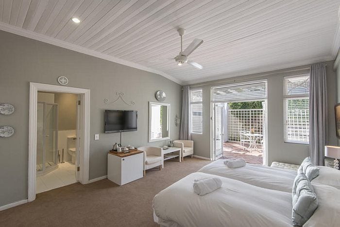 Inside Summerwood Guest House the nine stylishly decorated air-conditioned bedrooms are large and uncluttered with a light, airy ambience. Each has a separate bath and shower, telephone, television, bar-fridge, safe, ceiling fan and underfloor heating. Enjoy breakfast on the terrace overlooking the pool and gardens or in the summery country-style dining room. Join other guests for pre-dinner drinks on the veranda before enjoying dinner at one of Stellenbosch’s restaurants. The guesthouse personnel will be happy to make reservations for you.