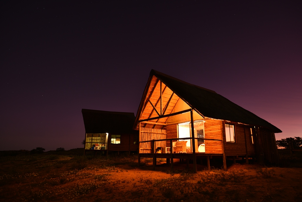 Each chalet has a sitting area, en suite bathroom with double basins, toilet and an outside shower. Your own private deck makes it easy to enjoy the breath-taking panoramic views of the Kgalagadi Park and its night sky. The Family Suite has a double sleeper couch for up to two small children. (Children of 8 years and older are allowed at the lodge.) The Desert suite has a romantic secluded outdoor bath. Wooden walkways join the main area to the chalets.