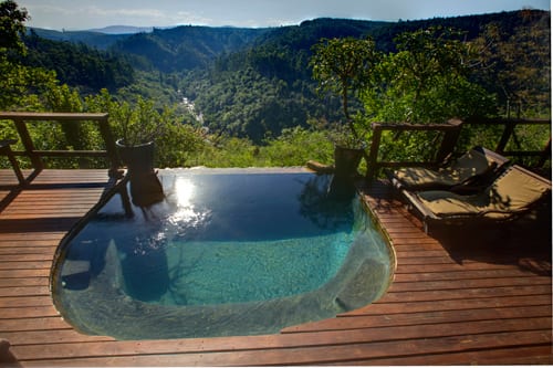Five spacious and luxurious thatched chalets all enjoy the river and forest views and are well-appointed with fireplace, an unusual ‘waterfall’ shower, large oval stone bath, private deck with your own private plunge pool overlooking the stunning views.Β There’s also a five bedroomed self-catering lodge which can be taken as a unit with its own fireplace, living area, kitchen and outdoor deck and private pool. This is perfect for groups of friends or a family party.