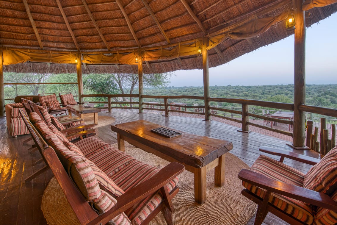 Traditional grass thatching adorns the roof of the main lodge, which is set off the ground on an elevated deck, so as to make the most of the stunning vistas. The breezy lounge boasts ample seating in a relaxing open-air environment. The dining area, where culturally inspiring meals are served, consists of simple safari style seating and the elevated position allows for excellent views over the riverbank below.