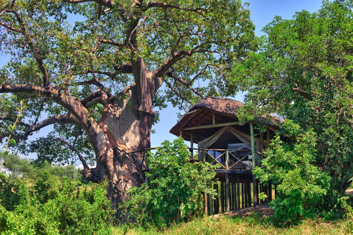 Accommodation consists of 20 spacious tents built on wooden platforms with a thatched roof, all of which are en suite. Each tent has a generously proportioned private veranda offeringΒ stunning views of Mount Meru and Mount Kilimanjaro in the distance. Thatched roofs and trees keep the tents cool even at midday. Most of the safari tents also offer views of the river, which morphs to a dramatic sand bed in the dry season. There are 5 family safari tents away from the river edge,Β which can cater for a families of 3 up to 5. The most secluded tent is the luxury honeymoon tent, built around a baobab tree overlooking the river. Instead is a king-sized bed. Outside the deck has a spa bath overlooking the river and an outdoor shower.