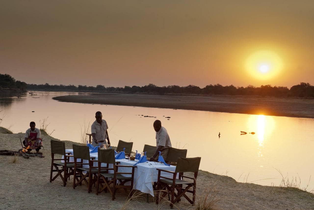 The central areas at Tena Tena, with thatched dining room and bar, are moulded around a large termite mound and mahogany tree. Here there is space to relax and unwind whilst reflecting on the day’s safari and watching the elephants, hippo and antelope on the river banks. After an exhilarating day on safari and perhaps a well deserved afternoon siesta,Β you sit down to a beautiful dinner on the banks of the Luangwa, enjoying the stars and sounds of the African night.
