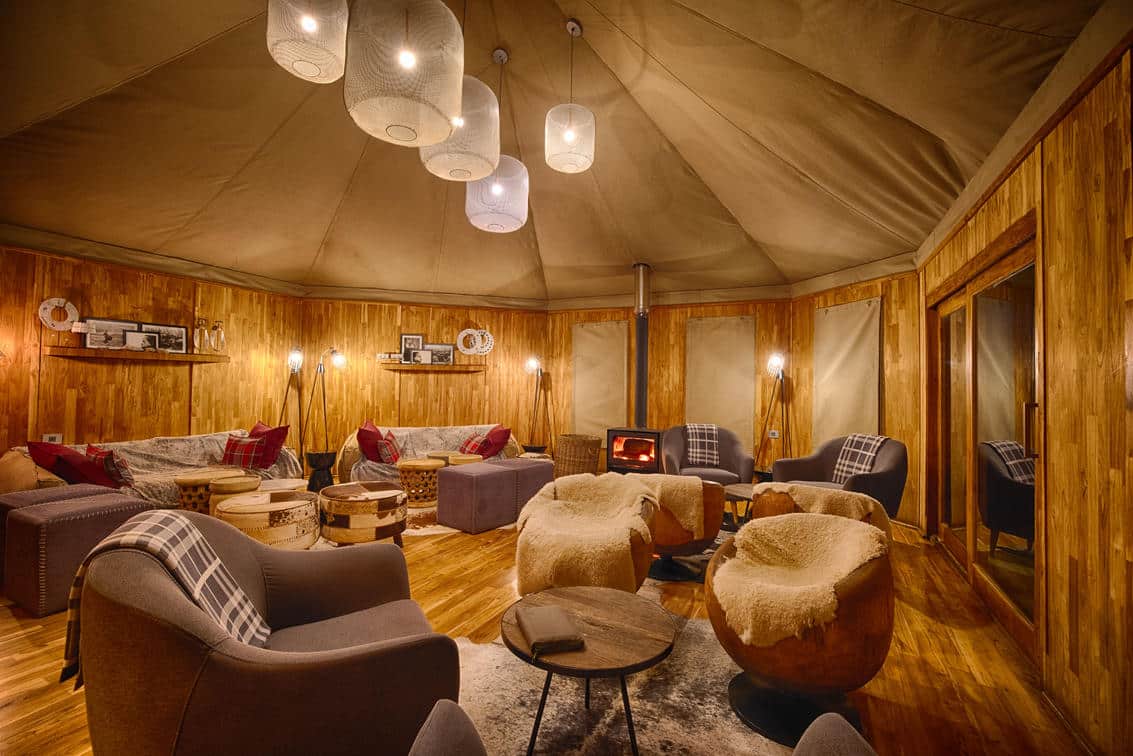 Each of the six large, luxury guest tents is warm, intimate and contemporary. All of them have fantastic views stretching to the Gola Mountains. Several of them have a mezzanine available for a third bed for children (steep steps). The tents all feature king-sized beds, en-suite bathrooms with separate toilet and double-headed shower. Each has a wood burning fireplace and plenty of cosy blankets and rugs for warmth in the colder months.